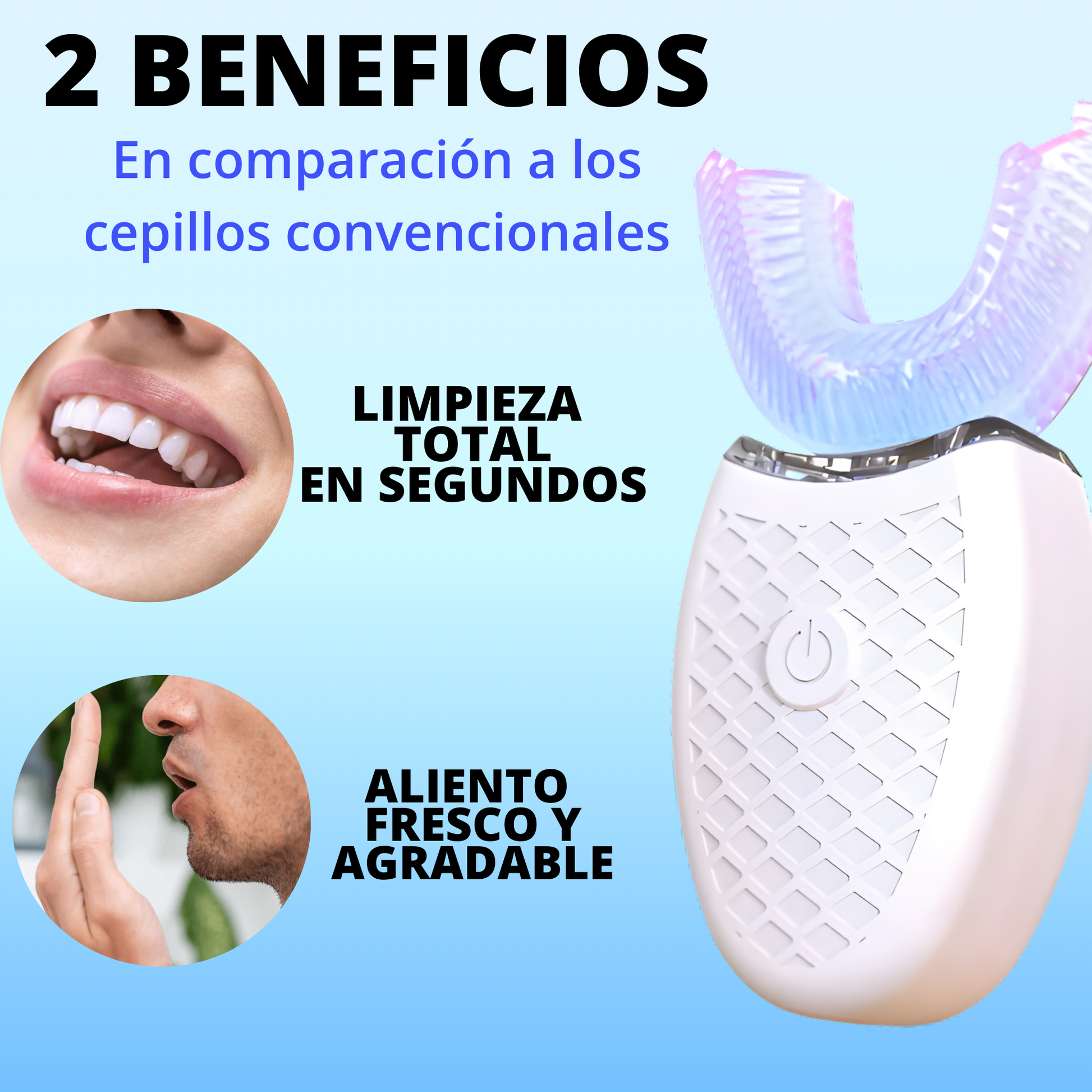 El U-SONIC 360 limpia todos tus dientes al mismo tiempo gracias a su diseño U-Shape y tecnología sónica 360°. Disfruta de una limpieza profunda en solo segundos mientras haces otras cosas. Tres modos de limpieza y luz fría blanqueadora para una sonrisa más limpia, rápida y cómoda. ✨